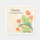 70th birthday party napkins featuring a delicate hand painted watercolor parakeet perched among soft blooming tulips on a warm, peaceful background. Designed with gentle detail and calming color, this elegant nature inspired invitation offers a beautiful way to celebrate a milestone birthday with grace, warmth, and meaning.