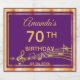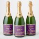 A sparkling wine bottle label for an elegant purple and gold themed 70th birthday party. Templates for a name, age, and date of the party. Golden coloured letters. Purple background colour and a faux gold frame and golden music notes. You can change the background colour to match your theme. Click customise and then "select a background colour" on your right.