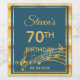 A wine or sparkling wine bottle label for an elegant teal, blue green and gold themed 70th birthday party. Templates for a name, age, and date of the party. Golden coloured letters. Teal background colour and a faux gold frame and golden music notes. You can change the background colour to match your theme. Click customise and then "select a background colour" on your right.