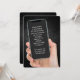 Cellphone in a hand on black rock background for a 70th birthday party.