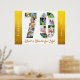 Personalised photo collage poster for a 70th birthday. The design features gold borders and up to 13 different photos which will be displayed in the shape of the number 70.. The template is set up ready for you to add your photos in a mixture of square, landscape and portrait pictures to you lots of options for placement. You can also add your name and year established or last name in the borders. The design is complete with the wording "what a wonderful lift" in script typography, which you can also customise if you wish.