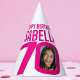 Bold add your own photo and name white with bright pink text party hat. Ideal for a special ladies 70th birthday party celebration. Other matching birthday items and colour options are available. Original graphic art and design by www.mylittleeden.com