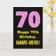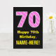 70th Birthday: Pink Stripes and Hearts "70" + Name Card