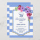 Blue striped floral 70th birthday dinner party invitation.