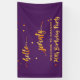 Elegant and modern banner for a 70th birthday party. Girly purple backdrop and faux gold text written with a trendy hand-lettered style script: hello seventy. With golden dots as decor. Templates for name and the text: Welcome to …. golden letters. You can change the background colour to match your theme. Click customise and then "select a background colour" on your right.