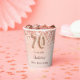 For a glamourous and girly 70th birthday party. A rose gold gradient background. On the front and the back: Personalise and add a name and a date. Decorated with faux glitter dust. Nr 70 is written with a balloon style font.