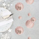Girly and feminine confetti for a 70th birthday party table setting. A rose gold faux metallic, foil looking background decorated with faux rose gold glitter drips. Personalise and add her name/text. Dark rose gold coloured letters. Some confetti chips with name and date, others with number 70 written with a balloon style fonts, and with the text Happy Birthday.