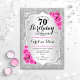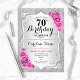 70th Birthday - Silver Stripes Pink Roses Invitation