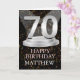 Make a 70th birthday card extra special by adding a name. The number 70 on a plinth with spotlights shining to light it up!