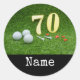 70th Birthday with golf ball and tee on green Classic Round Sticker
