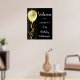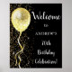 Customisable 70th birthday welcome poster, featuring a gold glitter balloon, with a shower of gold glitter on a black background.