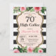 70th High Coffee Invitation for women. Black and Gold Birthday Party Invite. Gold Glitter. Pink Watercolor Floral Flower. Black and White Stripes. Printable Digital. For further customisation, please click the "Customise it" button and use our design tool to modify this template.