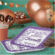 This over-the-hill design has a purple and white random number pattern with milestone number 70 repeated in varied sizes and angles. There is a white rounded square in the centre for your text and purple and white around the rim.