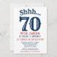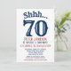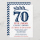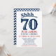 A funny and striking 70th birthday navy blue, white and red surprise birthday invitation for milestone.