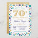 Purple, teal and gold 70th Surprise Birthday Party Invite