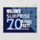 70 YEARS BLUE PATTERN Here's a trendy save the date diagonal design with fun lettering for a SURPRISE birthday party. Modern and elegant! All text is totally customisable, so also suitable for a 71 72 73 74 75 76 77 78 and 79 year birthday, or any other year you need.