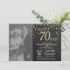 70th Wedding Anniversary with custom photo. Chalkboard Black and Gold Invitation. Seventy Wedding Anniversary. Chalkboard Black and Gold Glitter Diamond Background. Gold Confetti. Adult Birthday. Woman or Man Male Birthday Party. For further customisation, please click the "Customise it" button and use our design tool to modify this template.