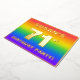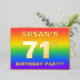 The front of this vibrant and joyful seventy-first birthday party foil invitation card design features a custom name, a large number “71st”, the message “BIRTHDAY PARTY!”, and a border. The background of the front features an exciting, multicolored, rainbow spectrum inspired gradient pattern. The back features personalized details about the event, such as the date, time, place, and any other useful information. Editable invitations like these might be a fun way to invite attendees to a birthday party being held in celebration of somebody’s 71st birthday. [~Z0000599]