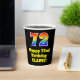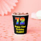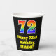 This exciting and fun birthday themed paper cup design features a large number “72” with a rainbow spectrum gradient inspired pattern, along with the message “Happy 72nd Birthday,”, and a personalised name. It also has a black-coloured background. Vibrant, colourful paper cups like this might be fun to use at a birthday party being held to celebrate somebody’s seventy second birthday. [~Z0000537]