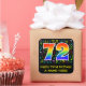 This fun, colourful, and vibrant birthday sticker design features a large number "72" having a rainbow spectrum gradient inspired pattern. It also features the message "Happy 72nd Birthday,", and a personalised name. Part of the background features a pattern of various music notes and symbols having a variety of colours and sizes. Fun, customisable birthday stickers like this might be used as a birthday party decoration, given as a birthday gift, or perhaps be used when wrapping birthday presents being given to celebrate a singer’s, a musician’s, a song composer’s, or somebody else’s seventy second birthday. [~Z0000423]