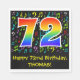 This fun, vibrant, and colourful birthday themed paper napkin design features a large number "72" with a rainbow spectrum gradient inspired pattern, along with the message "Happy 72nd Birthday,", and a personalised name. Part of the background features a pattern of various music notes and symbols having a variety of colours and sizes. Birthday themed paper napkins like this might be used at a party celebrating a musician’s, a singer’s, a composer’s, or somebody else’s seventy second birthday. [~Z0000421]