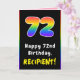 72nd Birthday: Colourful Rainbow # 72, Custom Name Card