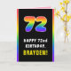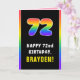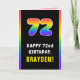 72nd Birthday: Colourful Rainbow # 72, Custom Name Card