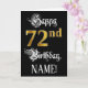 72nd Birthday — Fancy Script; Faux Gold Look; Name Card