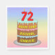 This fun and cheerful birthday-themed paper napkin design features a cartoon-style depiction of a three-tier birthday cake having number-shaped candles on top showing the age “72“, along with the message “HAPPY 72ND BIRTHDAY,”, and an editable recipient name. The background features a multicolored pastel rainbow spectrum inspired gradient pattern. Paper napkins like these might be used when celebrating somebody’s seventy second birthday. [~Z0000623]
