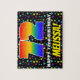 This exciting and fun birthday themed jigsaw puzzle design features a large number “72” having a multicolored rainbow spectrum inspired gradient pattern. It also features the message “HAPPY 72nd BIRTHDAY,”, and a personalised recipient name. The background has an eye-catching, multicolored pattern featuring star shapes of various sizes. An upbeat, editable birthday puzzle like this might be a fun way to deliver birthday greetings to somebody who is celebrating their seventy-second birthday. [~Z0000607]