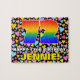 This exciting and vibrant birthday jigsaw puzzle design features a large number “72” with a multicolored rainbow spectrum inspired gradient pattern, along with the message “HAPPY 72nd BIRTHDAY,”, and a personalised recipient name. The background has an upbeat pattern of heart shapes having a variety of sizes and colours. A colourful, customisable birthday puzzle like this might be used to acknowledge somebody’s seventy-second birthday. [~Z0000611]