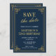 Elegant 72nd birthday invitations Men Save the date Navy Gold chic modern