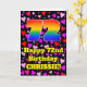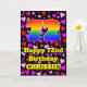The front of this fun and happy birthday themed greeting card design features a large number “72” having a rainbow spectrum gradient inspired pattern. It also features the message “Happy 72nd Birthday,”, and a personalised name. The background of the front features a pattern of pink, red, and purple heart shapes of various sizes. The inside has a customisable birthday greeting message, or could perhaps be cleared and left blank if a message is to be written by hand instead. An upbeat, customised birthday greeting card like this might be sent to celebrate somebody’s seventy-second birthday. [~Z0000551]