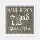 This elegant and elaborate birthday party themed paper napkin design features a custom name and the message “72nd Birthday Party”. The large number “72nd” and the words “Birthday Party” are in luxurious script-style text. The background has an imitation/faux woodgrain-inspired pattern. Ornate, fancy paper napkins like this might be useful to have at a birthday party being held to honour somebody’s 72nd birthday. [~Z0000564]