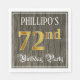 This fancy and elegant birthday paper napkin design features an editable name and the message “72nd Birthday Party”. The large number “72nd” has a faux/imitation gold-inspired colouring pattern, the words “Birthday Party” are in opulent script-style text, and the background has an imitation/faux woodgrain-inspired pattern. Ornate, opulent paper napkins like this might be useful at a birthday party being held to celebrate somebody’s seventy second birthday. [~Z0000566]