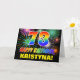 The front of this fun, colourful, and cheerful birthday greeting card design features a large number "73" and the message "HAPPY BIRTHDAY,", both having a rainbow spectrum gradient inspired pattern colouring, along with a bold yellow personalised recipient name. The front also has a multicolored background pattern inspired by the appearance of bursting celebratory fireworks. The inside features a personalised birthday greeting message, or could perhaps be cleared and left blank if a message is to be written by hand instead. A colourful personalised birthday card like this might be a fun way to celebrate somebody’s seventy third birthday. [~Z0000471]