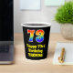 This exciting and fun birthday paper cup design features a large number “73” having a rainbow spectrum gradient inspired pattern. It also features the message “Happy 73rd Birthday,”, and an editable name. It also has a black-coloured background. Colourful, vibrant paper cups like this might be fun to use at a birthday party/celebration being held in celebration of somebody’s seventy third birthday. [~Z0000537]