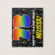 This cheerful and upbeat birthday themed jigsaw puzzle design features a large number “73” having a multicolored rainbow spectrum inspired gradient pattern. It also features the message “HAPPY 73rd BIRTHDAY,”, and a custom recipient name. The background features a fun, multicolored stars pattern. A colourful, customisable birthday puzzle like this might be used to celebrate somebody’s seventy-third birthday. [~Z0000607]