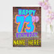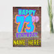 The front of this fun birthday themed greeting card design features the message “HAPPY 73RD BIRTHDAY,” having a vibrant, colourful, graffiti-inspired appearance, in addition to a personalised recipient name. The background of the front features a brick wall inspired pattern. The inside has a custom birthday greeting message, or could perhaps be cleared and left blank if a message is to be written by hand instead. A fun, personalised birthday greeting card like this might be sent to celebrate somebody’s seventy-third birthday. [~Z0000531]
