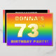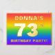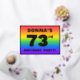 The front of this joyful seventy-third birthday party foil invitation card design features a personalised name, a large number “73rd”, the message “BIRTHDAY PARTY!”, and a border. The background of the front has an exciting, colourful, rainbow spectrum inspired gradient pattern. The back features personalised details about the event, such as the date, time, place, and any other information that may be useful. Personalised invitations like these might be a fun way to invite attendees/guests to a birthday party being held in celebration of somebody’s 73rd birthday. [~Z0000599]