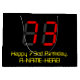 This silly and geeky birthday gift bag design features a large number "73" having a red seven segment digital display inspired appearance, along with the message "Happy 73rd Birthday," and a personalised name in geeky yellow text, on a black coloured background. A customised gift bag like this might be used for wrapping presents or gifts being given to somebody who is celebrating their seventy third birthday. [~Z0000389]