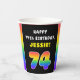 74th Birthday: Colourful Rainbow # 74, Custom Name Paper Cups