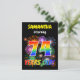 The front of this exciting and vibrant birthday party invitation postcard design has an editable name, a lively bursting celebratory fireworks inspired pattern, and the message "74 YEARS OLD!" having a colourful rainbow spectrum inspired gradient pattern. The back features an editable message with information about the party, such as when and where it is being held. Invitation postcards like this could be sent to potential guests of a party being held to celebrate the birthday of somebody who is turning 74 years old. [~Z0000452]