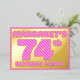 The front of this fun and bold seventy-fourth birthday celebration/party foil invitation card features a personalised name, a large number “74th”, the message “BIRTHDAY PARTY!”, and a border, all featuring a girly light pink and dark pink stripes pattern. The back features personalised details about the event, such as the date, time, venue, and any other relevant information. Editable invitations like these might be used to invite guests to a birthday gathering being held in celebration of somebody’s 74th birthday. [~Z0000597]