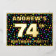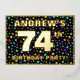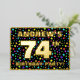 The front of this eye-catching seventy-fourth birthday celebration/party foil invitation card design features an editable name, a large number “74th”, the message “BIRTHDAY PARTY!”, and a border. The background of the front features a fun, multicolored star shapes pattern. The back features personalised details about the event, such as the date, time, location, and any other information that may be important. Personalised invitations like these might be a fun way to invite attendees/guests to a birthday gathering/party being held to celebrate somebody’s 74th birthday. [~Z0000600]
