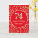 74th Birthday Red and Gold Floral Pattern Birthday Card. For further customisation, please click the "Customise it" button and use our design tool to modify this template.
