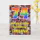 The front of this colourful, autumn-themed, and nature-inspired birthday greeting card design features a large number "74" having a rainbow spectrum gradient inspired pattern. It also features the message "Happy 74th Birthday,", and an editable name. The front features a background depicting rustic fallen autumn leaves. The inside features an editable birthday greeting message, or could perhaps be cleared and left blank if a message is to be written by hand instead. A personalised birthday card like this might be a fun way to send birthday wishes to somebody who is celebrating their seventy fourth birthday. [~Z0000384]