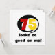 If you or someone you know is turning 75 years old, you'll love our 75 Looks So Good On Me birthday T-shirts, buttons, cards, stickers, mugs, magnets, and other 75th birthday apparel and gifts with a black, red, and yellow text design.