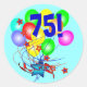A bright, fun colourful balloon bouquet with lots of bursting red and blue stars ready for you to personalise with any birthday age. Shown is "75!" in bold blue numbers. Easily change the light blue background to any colour of your choice. Just click on "Customise it" and then "edit" and then "background" to change it. A great special occasion fun and colourful sticker, as favours, or envelope seals! Great for the big 75th birthday or any age!