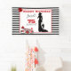 A chic and trendy 75th birthday party banner is a great addition for your seventy-fifth birthday party celebration. The words "75 & SENSATIONAL" are set using popular typography in fire engine red and black text colours. The text and font colours can be changed using the EDIT menu. A black and white stripes pattern complements the banner. Other colours and patterns are available.